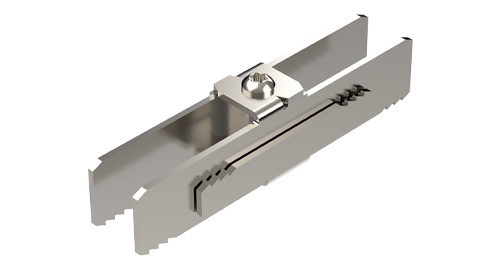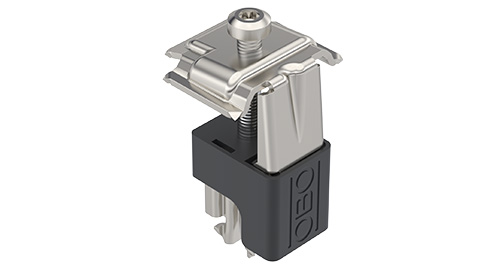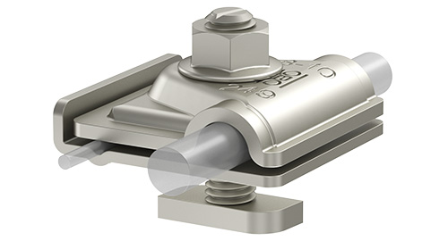 - Atbilstoši pielāgots zemējuma spailes stiprinājums ar iepriekš uzmontētu slīduzgriezni attiecīgā sijas profila gropē