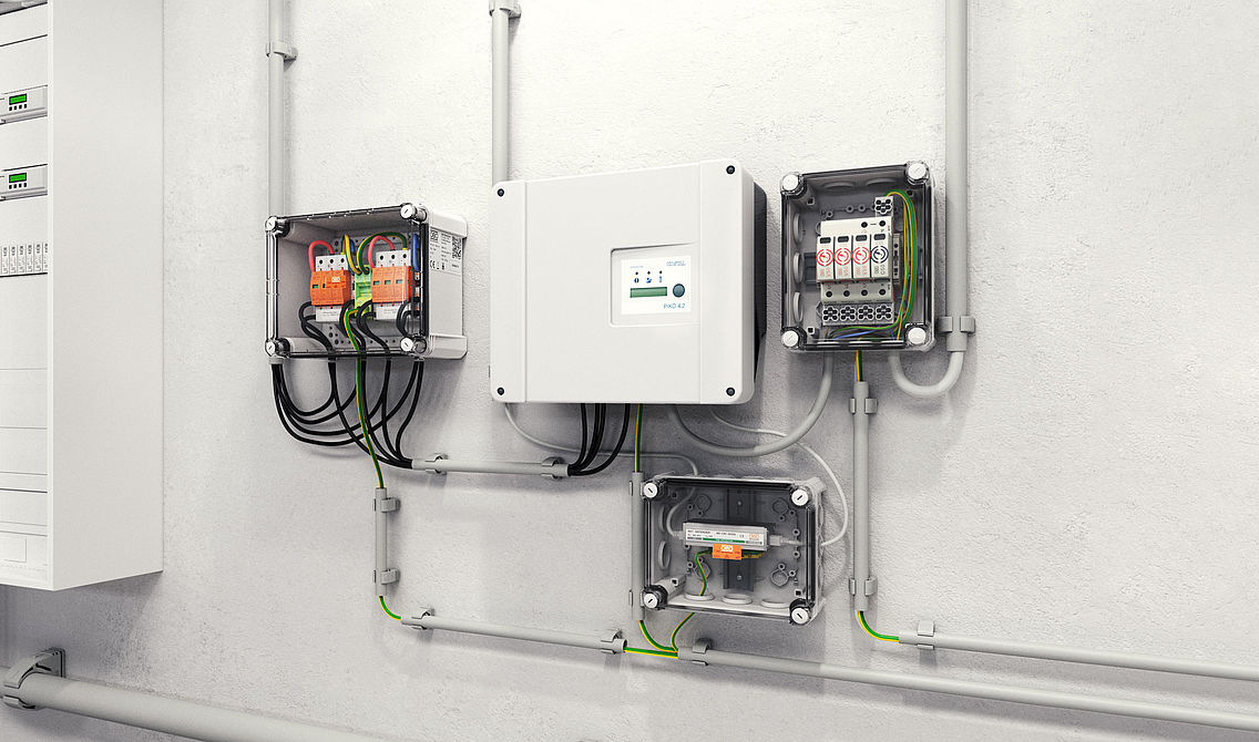 Saules fotoelementu sistēmu pārspriegumaizsardzībai vienmēr ir divas puses: gan līdzsprieguma, gan maiņsprieguma pusē pārspriegums dažādu iemeslu dēļ var tikt iesaistīts sistēmā un tādējādi tas, piemēram, var sabojāt invertoru. OBO pārspriegumaizsardzība droši pasargā visas puses. Invertora DC puses ieejas aizsardzībai OBO piedāvā ģeneratora pieslēguma kārbu klāstu ar zibensaizsardzību un pārspriegumaizsardzību. Tās pierādījušās kā īpaši uzticams risinājums saules fotoelementu sistēmu aizsardzībai un ietver OBO zinātību uzreiz par divām produktu vienībām: pret laikapstākļiem izturīga pieslēgumu kārba no savienojumu un stiprinājumu materiālu jomas kombinācijā ar uzticamiem risinājumiem no pārspriegumaizsardzības jomas.
