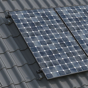 • Uzspraužama uz tam paredzētajām montāžas kājām (plakano jumtu sistēmai) vai montāžas sliedes gropē (slīpo jumtu sistēmai)