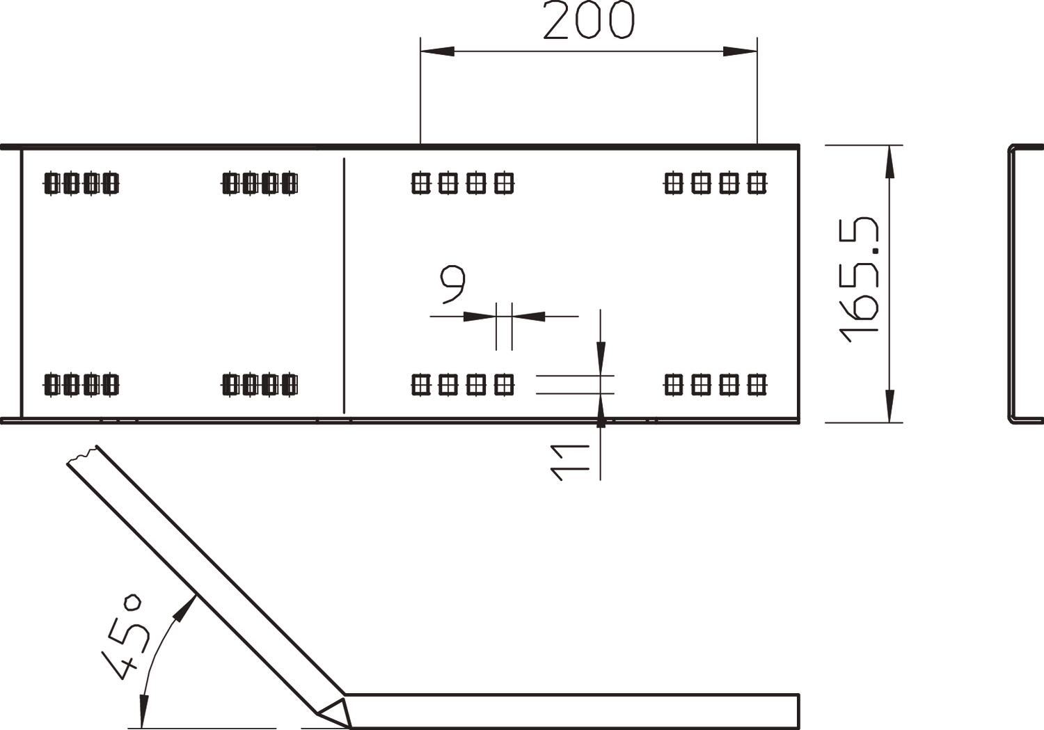 Produkta aprakstsHorizontāls 45° leņķa savienotājs gara laiduma kabeļu renēm un trepēm ar malas augstumu 160 mm.