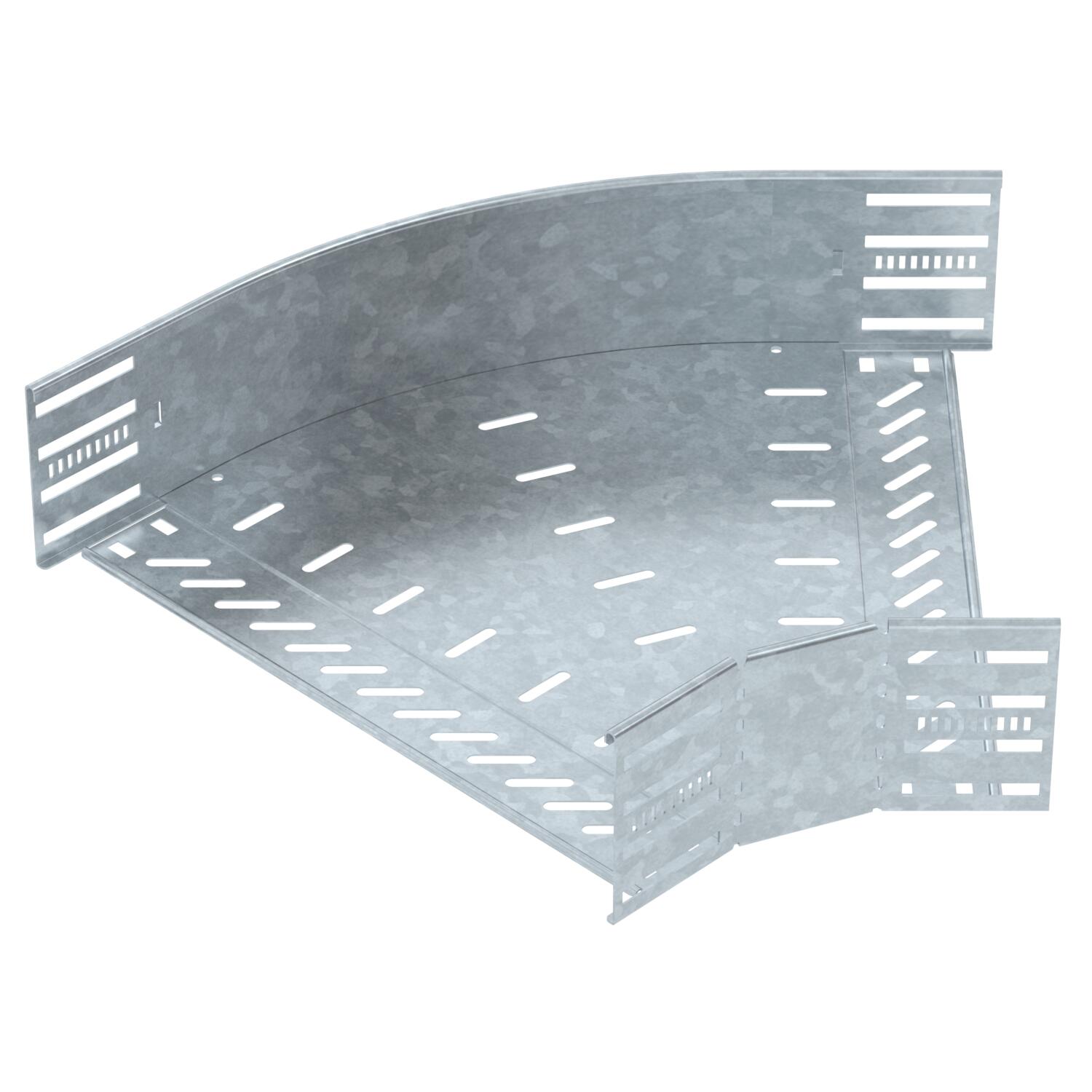 Produkta apraksts45° līkums horizontāla atzarojuma izveidei, fasondetaļa fiksējamām un skrūvējamām kabeļu renēm ar sānu augstumu 110 mm. Montāža bez skrūvēm ar dubultskavām vai skrūvsavienojumu ar plakangalvas skrūvēm FRS un kombinētajiem uzgriežņiem M6. Izmantojama iekštelpās un ārpus telpām. Stiprināšanas aksesuārus jāpasūta atsevišķi.