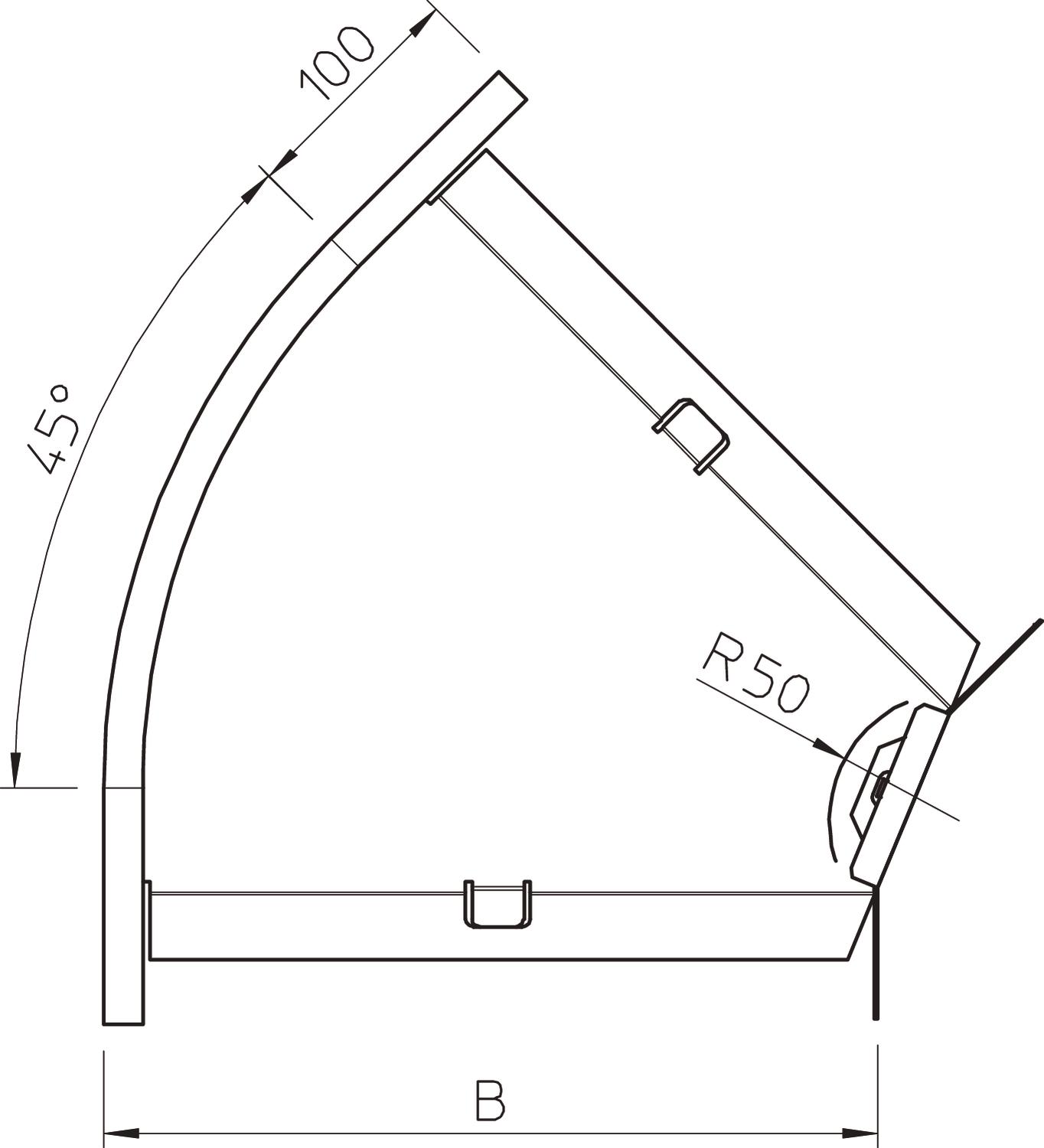 Produkta aprakstsHorizontāls 45° līkums visu veidu kabeļu renēm ar malas augstumu 35 mm.