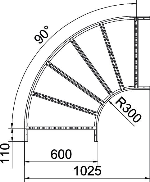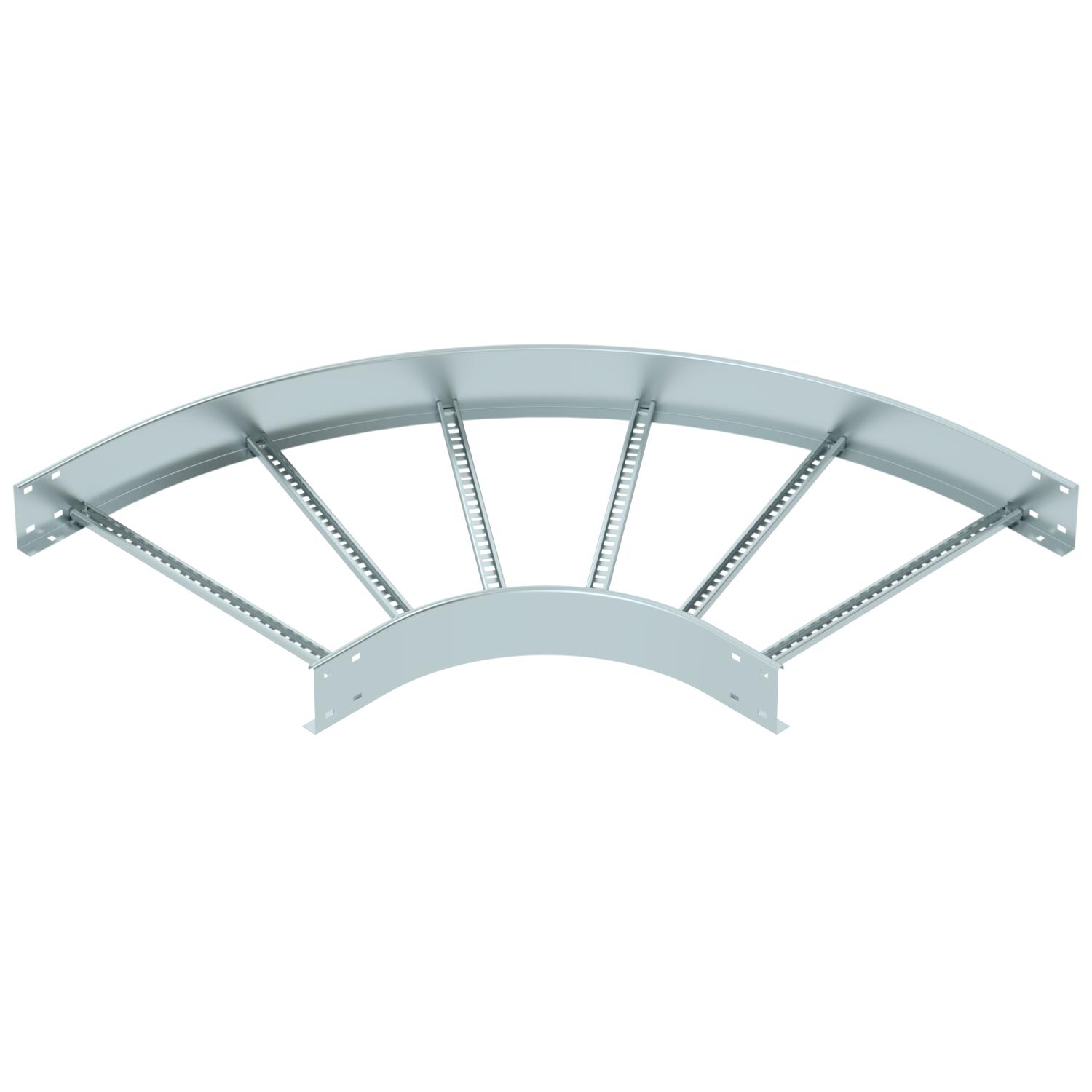 Produkta aprakstsHorizontāls 90° līkums ar piemetinātu spraisli visu veidu kabeļu trepēm, kuru malas augstums ir 110 mm.