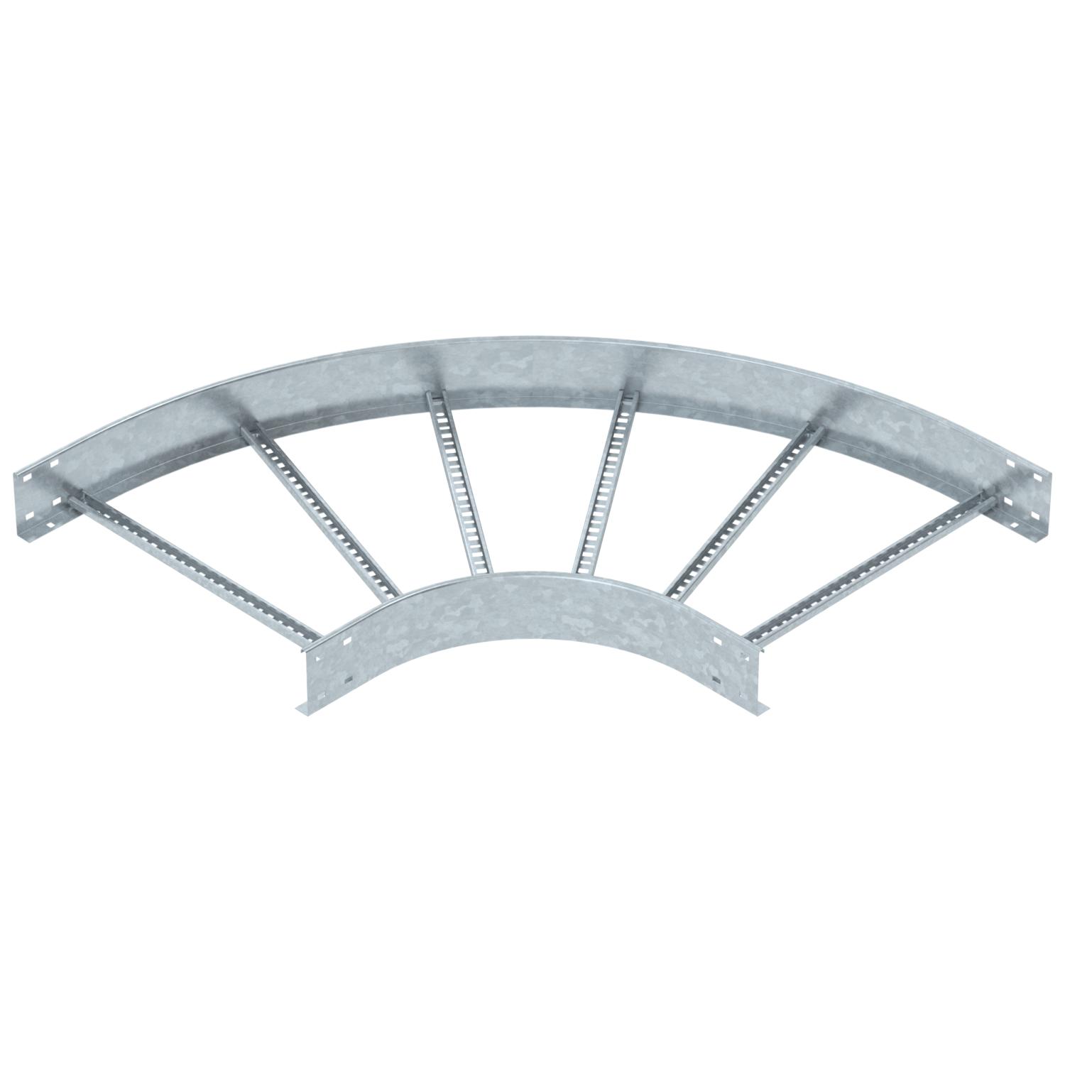 Produkta aprakstsHorizontāls 90° līkums ar piemetinātu spraisli visu veidu kabeļu trepēm, kuru malas augstums ir 110 mm.