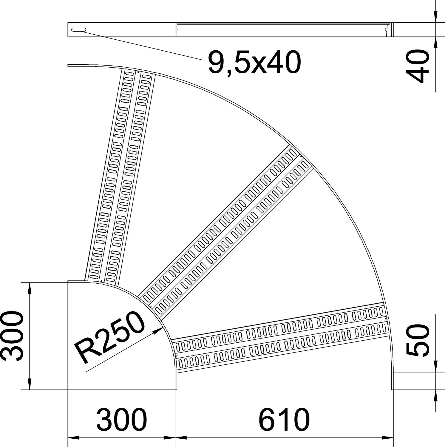 Produkta apraksts90° līkums kuģu būvei paredzētām kabeļu trepēm, tips SLZ, ar malas augstums 40 mm, ar iemetinātiem, perforētiem Z formas spraišļiem.