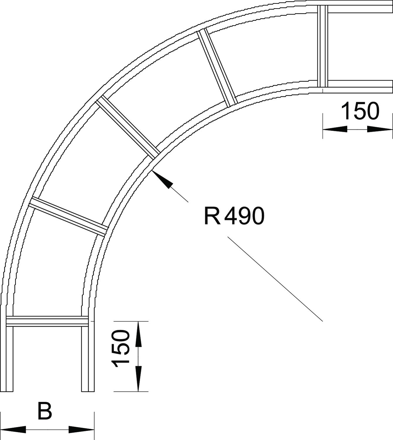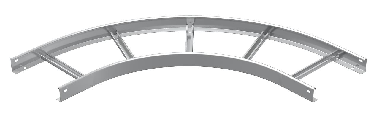 Produkta aprakstsHorizontāls 90° līkums kabeļu trepēm ar VS spraišļiem un malas augstumu 60 mm.