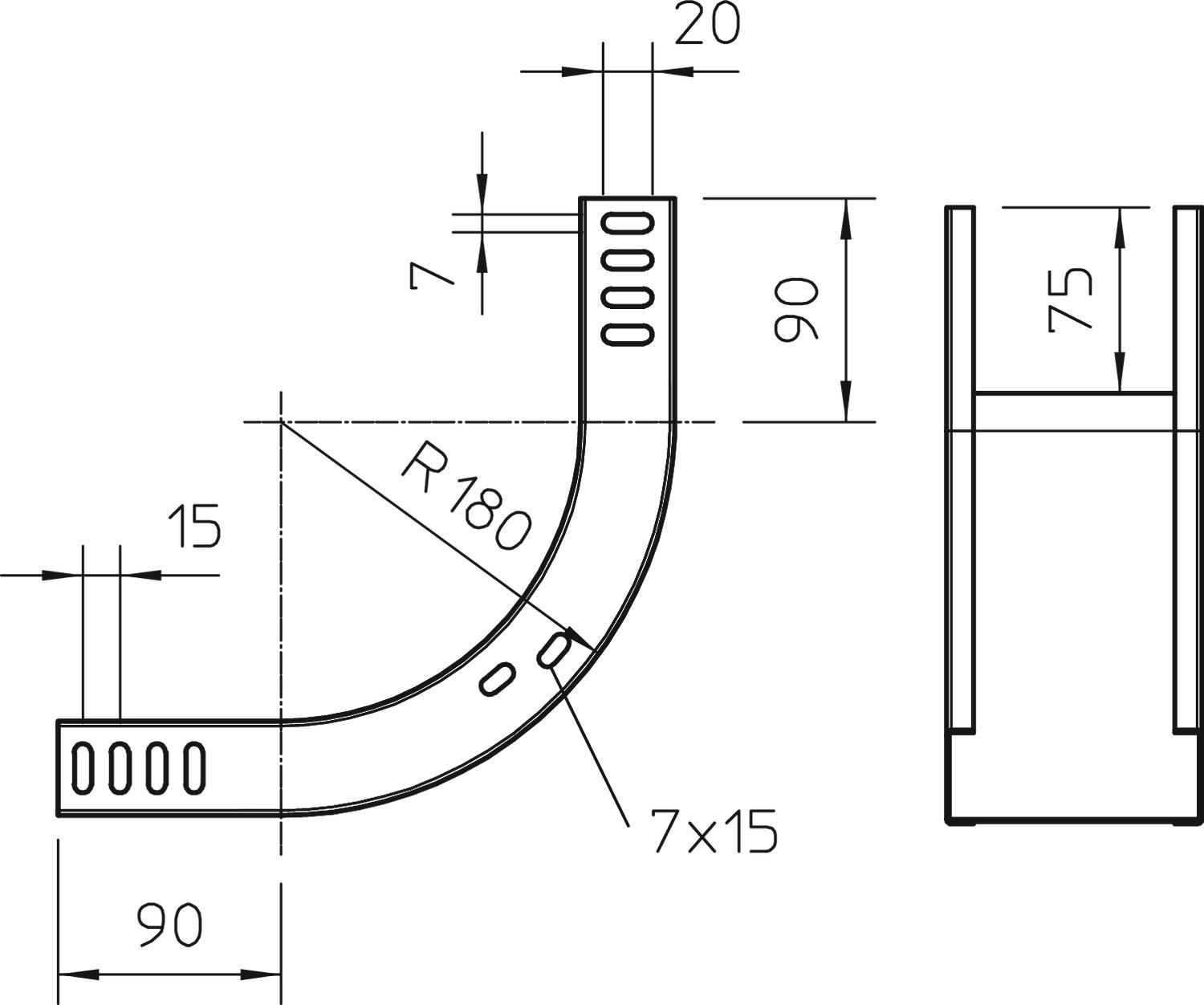 Produkta aprakstsUz augšu vērsts 90° vertikālais līkums visu veidu kabeļu renēm ar malas augstumu 35 mm.