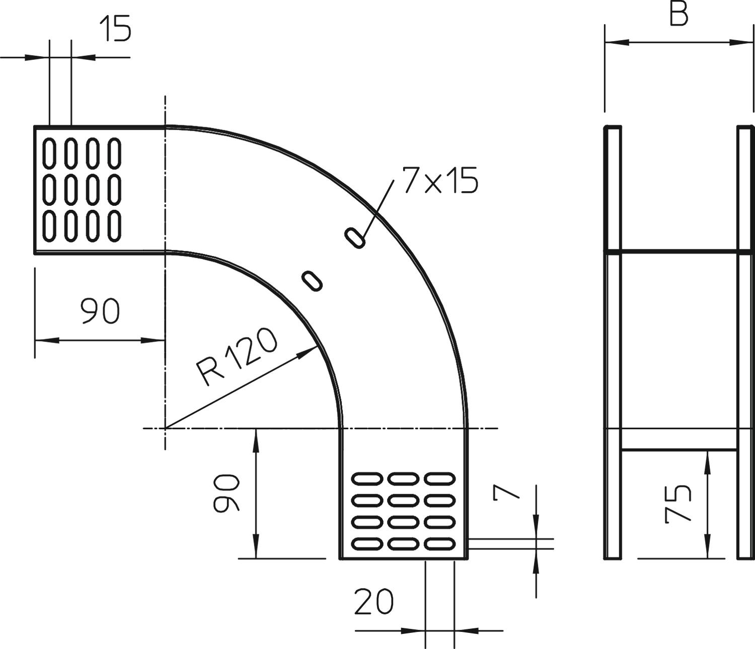 Produkta aprakstsUz leju vērsts 90° vertikālais līkums visu veidu kabeļu renēm ar malas augstumu 85 mm.