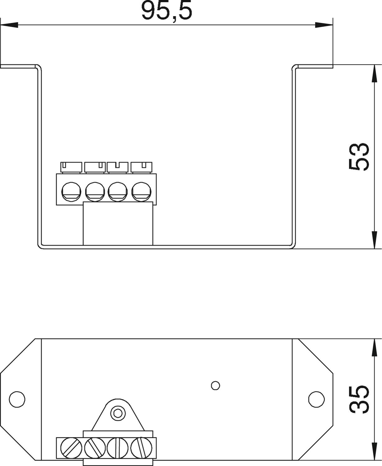- pamatelementa ar montāžas sliedi 35 mm un PE spaiļu kopnes 4 x 10 mm²