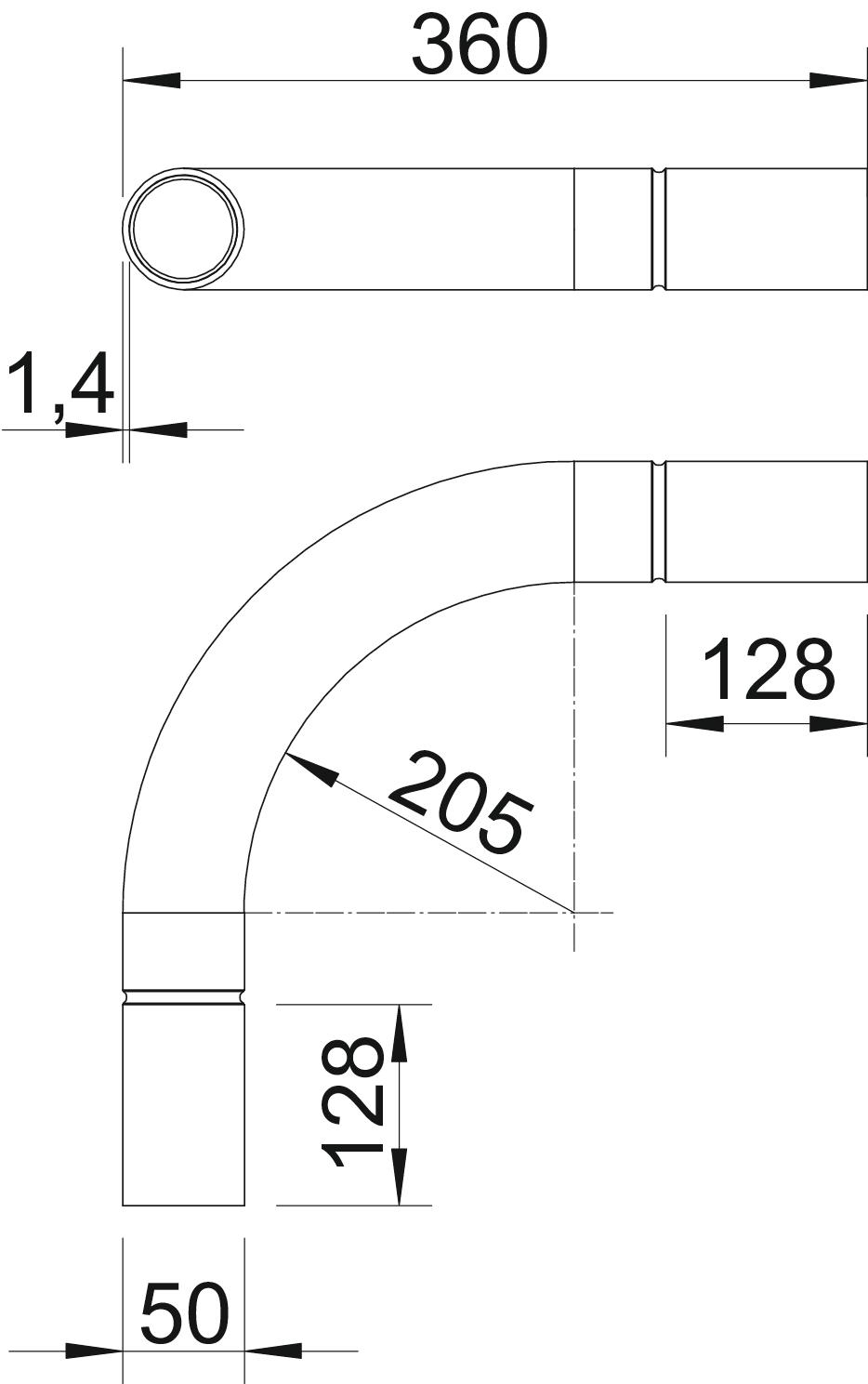 Ar apskates atveri un vāku nē Ar uzmavu jā caurules nominālajam diametram 50 mm Divdaļīgs nē Elastīgs nē Izmantošanas temperatūras diapazons maks. 250 °C Izmantošanas temperatūras diapazons min. -45 °C Izmērs Ø50mm Izmērs A 128 mm Izmērs B 360 mm Izmērs D 50 mm Izmērs l 63 mm Izmērs m (mm) M50 Izmērs R 180 mm Izmērs t 1,4 mm Izpildījums Spraud- Līkuma leņķis 90 ° Materiāls Alumīnijs Nesatur halogēnus nē Pulēta virsma nē Virsma matēta nē - Visi tipi