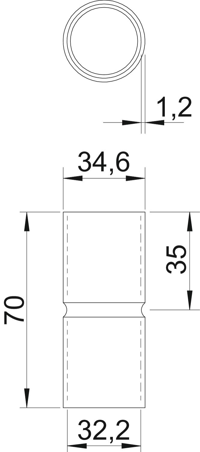Ar apskates atveri un vāku nē caurules diametram 32 mm Divdaļīgs nē Garums 70 mm Izmantošanas temperatūras diapazons maks. 250 °C Izmantošanas temperatūras diapazons min. -45 °C Izmērs Ø32mm Izmērs d 32,2 mm Izmērs D 34,6 mm Izmērs l 35 mm Izmērs L 70 mm Izmērs t 1,2 mm Izpildījums Spraud- Lielums 32 Materiāls Alumīnijs Nesatur halogēnus jā Pulēta virsma nē Virsma matēta nē - Visi tipi