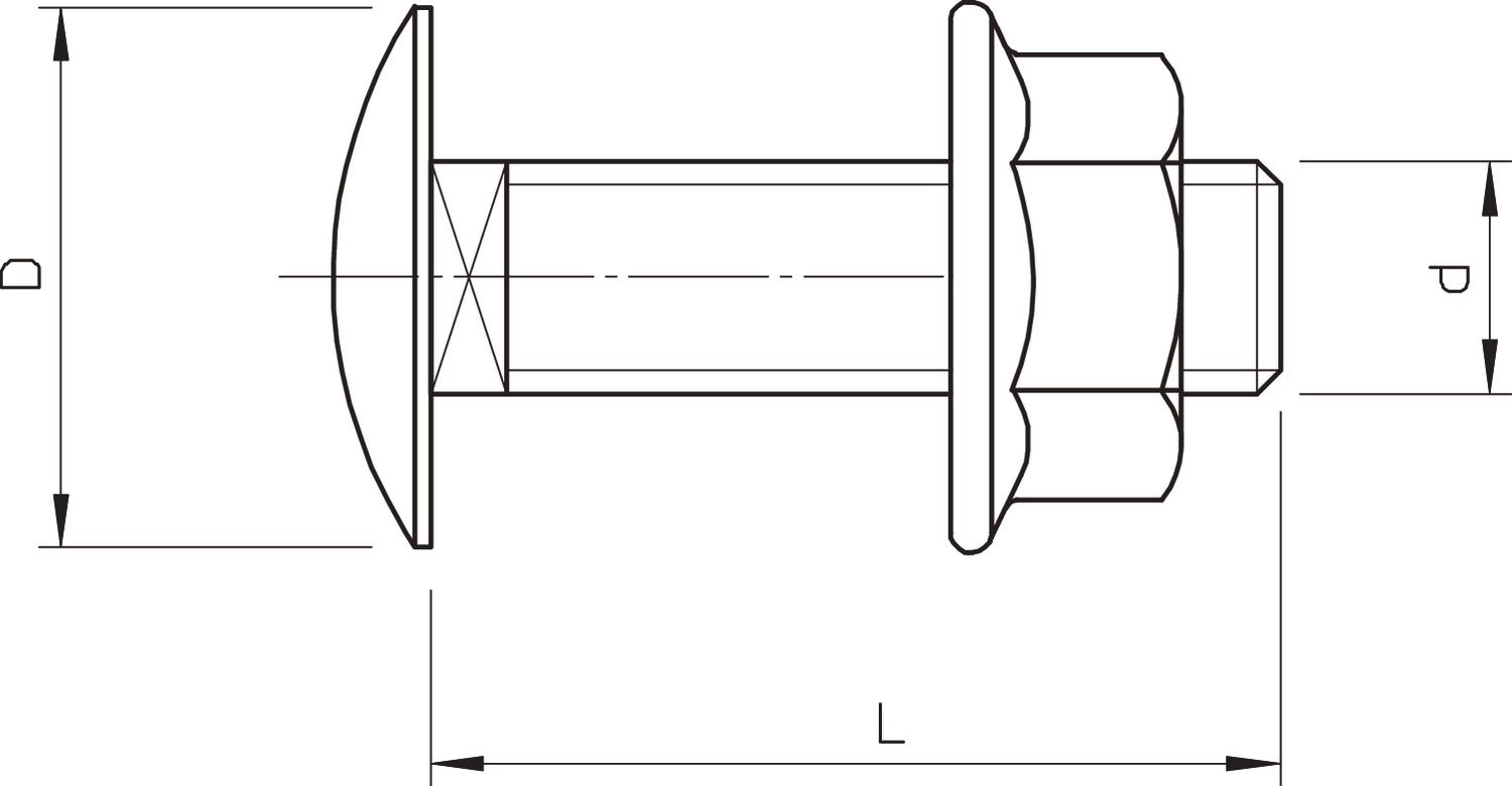 Produkta aprakstsApaļā plakangalvas skrūve ar četrstūra pamatni, komplektā kombinētais uzgrieznis.