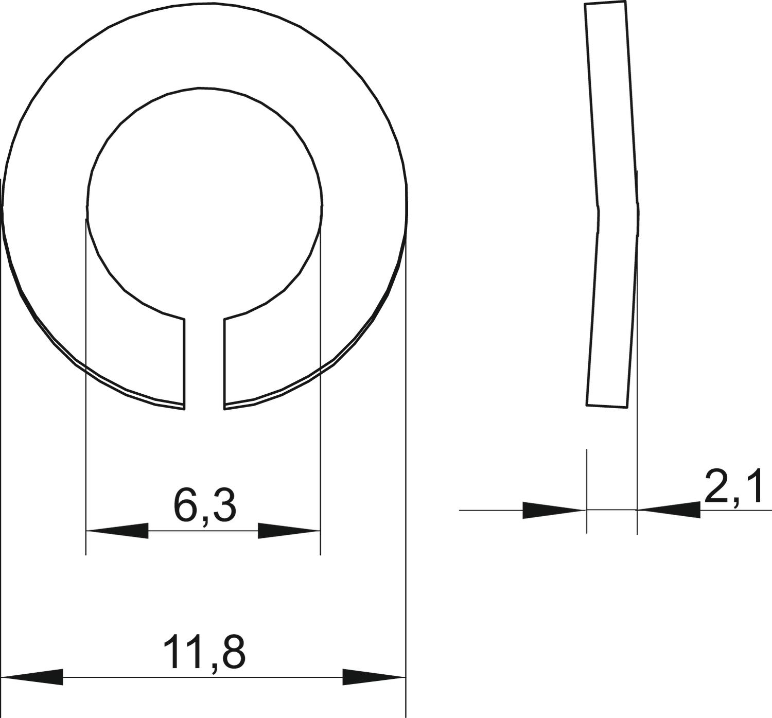 Ārējais diametrs 11,8 mm Augstums 2,1 mm Biezums 2,1 mm CO2 pēdas nospiedums (GWP) no šūpuļa līdz vārtiem 0,0019 kg CO2e / 1 Gabals Iekšējais diametrs 0,25 mm Izmērs M6 Izmērs d 6,3 mm Izmērs d maks. 11,8 mm Izmērs D, min. 11,8 mm Izmērs H 2,1 mm Loksnes biezums 0,08 in Materiāls Tērauds Sprostpaplāksnes versija viļņots Virsma galvaniski cinkota Vītne M6 - Visi tipi