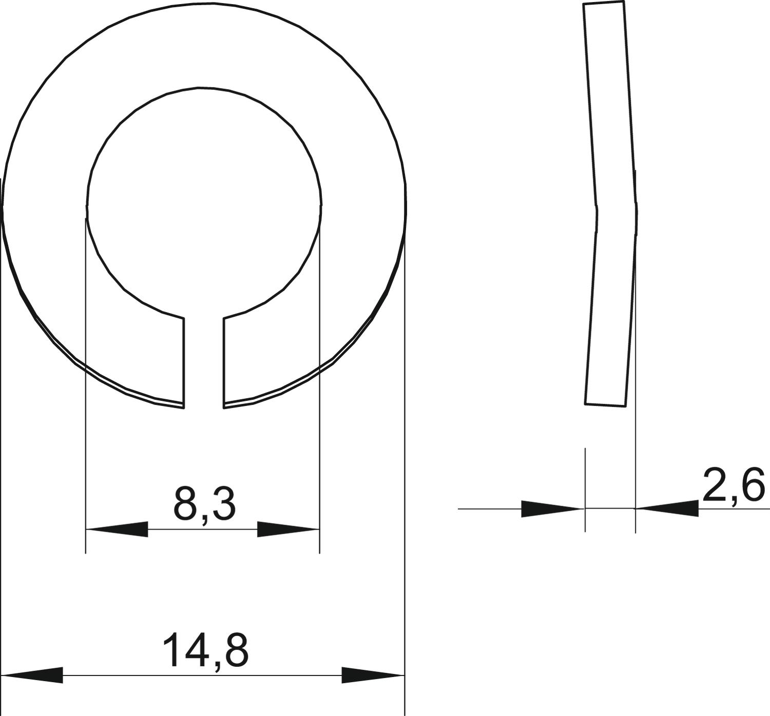 Ārējais diametrs 14,8 mm Augstums 2,6 mm Biezums 2,6 mm CO2 pēdas nospiedums (GWP) no šūpuļa līdz vārtiem 0,0042 kg CO2e / 1 Gabals Iekšējais diametrs 0,33 mm Izmērs M8 Izmērs d 8,3 mm Izmērs d maks. 14,8 mm Izmērs D, min. 14,8 mm Izmērs H 2,6 mm Loksnes biezums 0,1 in Materiāls Tērauds Sprostpaplāksnes versija viļņots Virsma galvaniski cinkota Vītne M8 - Visi tipi