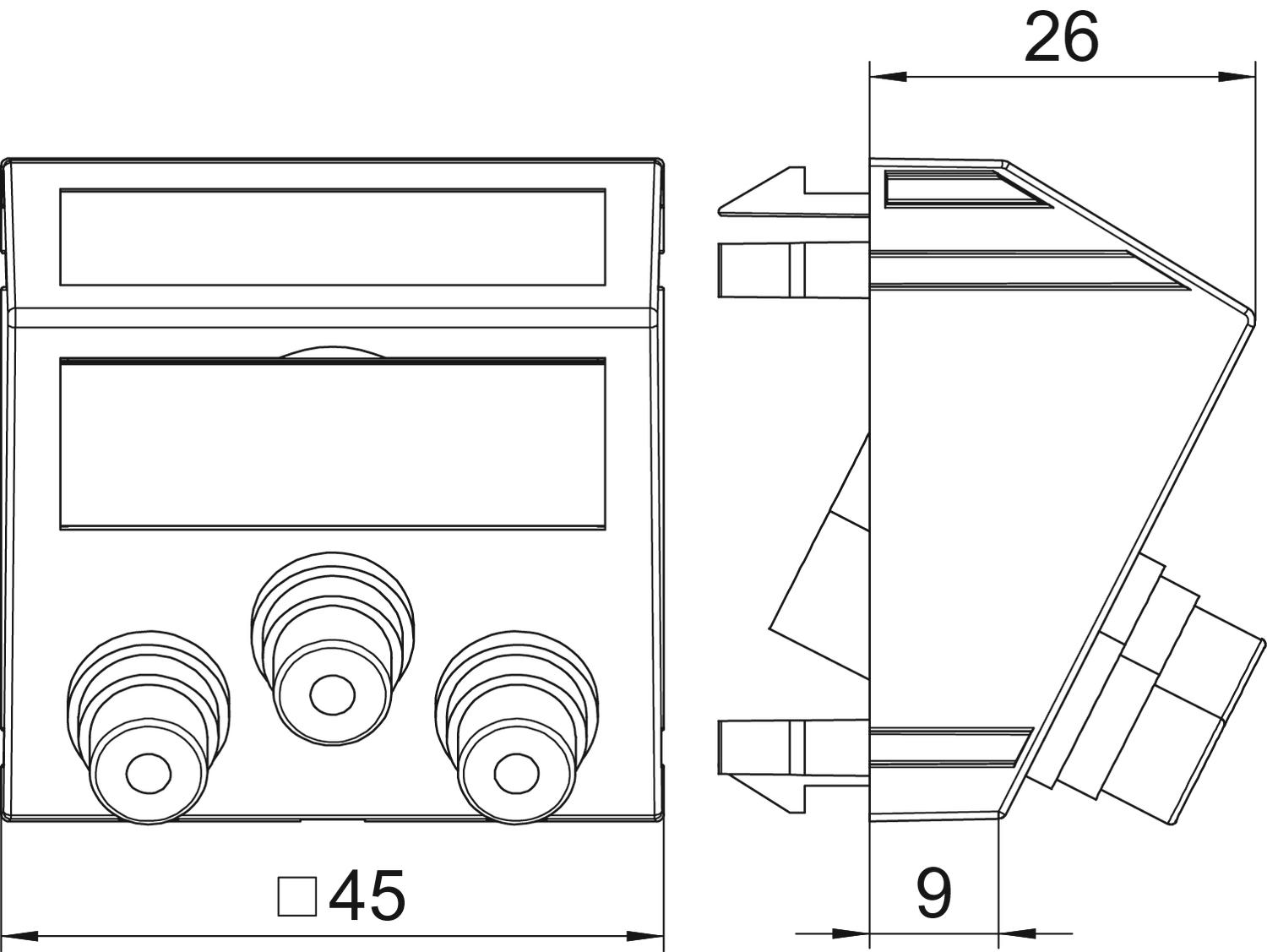 Produkta aprakstsMultimediju stiprinājums ar trīs Cinch pieslēguma ligzdām, paredzēts audio-video, kabeļa izeja slīpa, pamatne piezīmēm, trīs Cinch ligzdas (RCA) ar lodējamu savienojumu, krāsu kodējums dzeltens/sarkans/balts. Stiprinājuma plāksne ar automātiskās fiksācijas stiprinājumu, kas ir paredzēts horizontālai un vertikālai montāžai sistēmas vidē.
