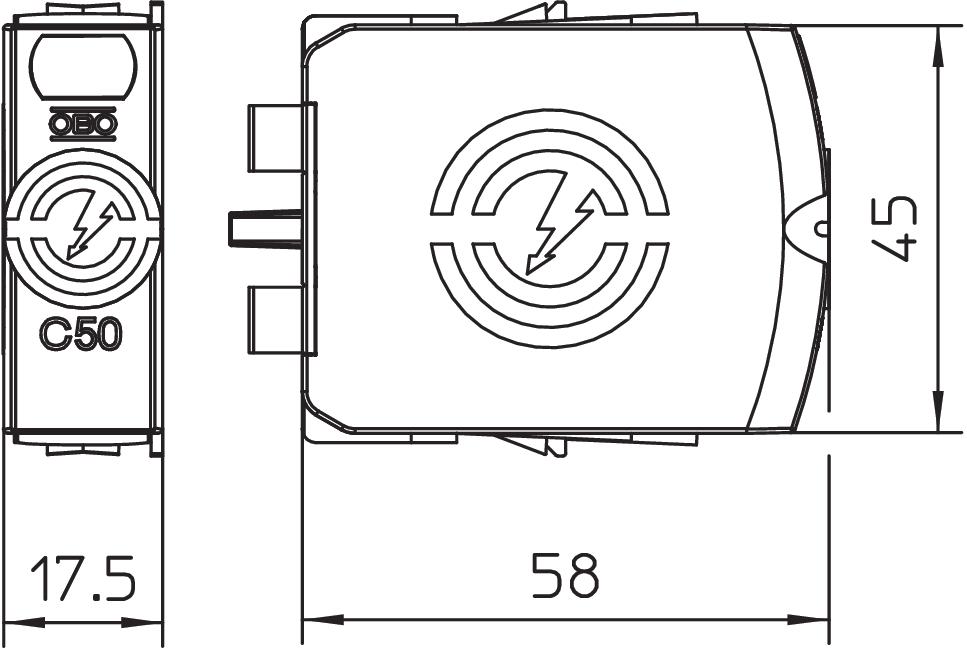 • Zibensizlādes strāvas caurlaides spēja līdz 50 kA (10/350) kopā