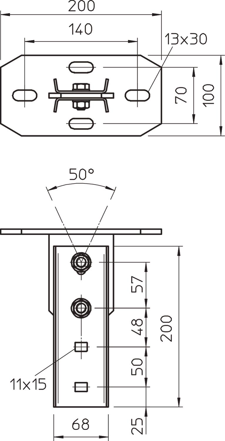 Produkta aprakstsVariējama, garenvirzienā regulējama augšējā plāksne montāžai uz IS 8 statņa.