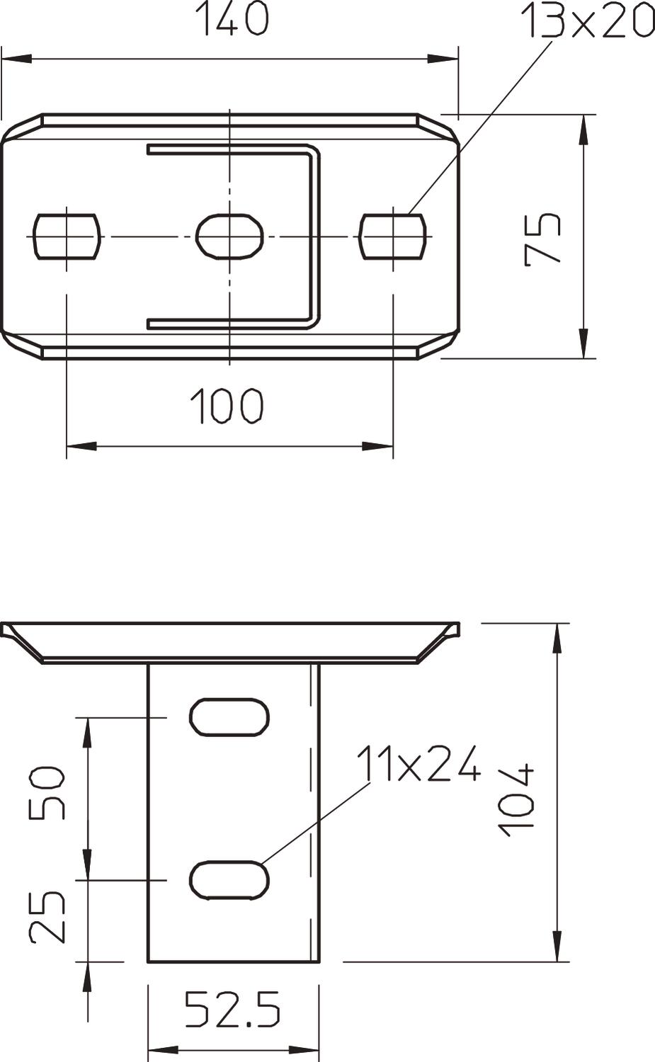 Produkta aprakstsTraversa plātne ar U veida statņa stiprinājumu, kas pagriezts par 90°.