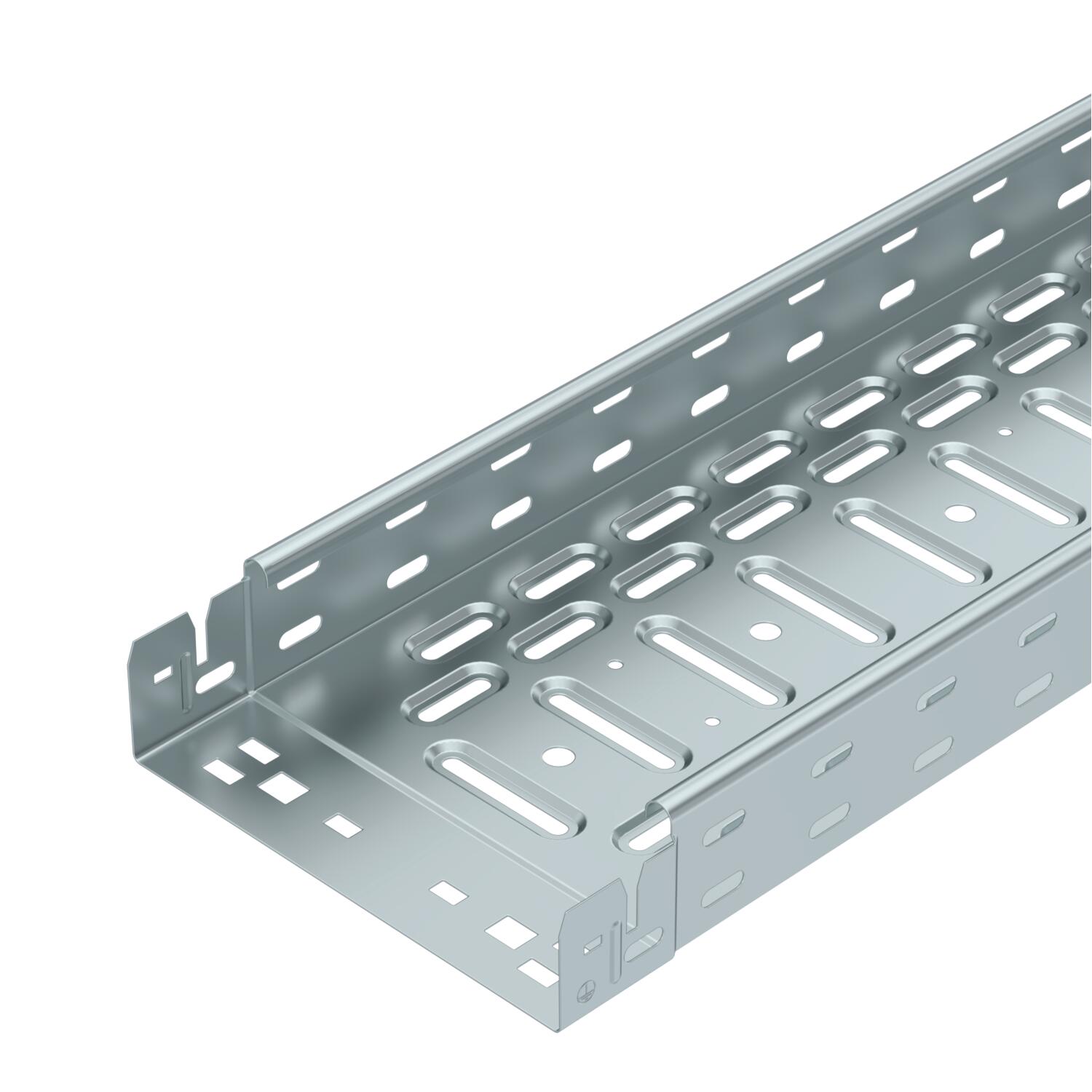 Produkta aprakstsCable tray made from CO2-reduced steel, with integrated quick-fastening system. Usable length 3,000 mm. With continuous side perforation of 7 x 20 mm for the installation of connection and mounting components. 11 mm perforation in the base for direct threaded rod susptension