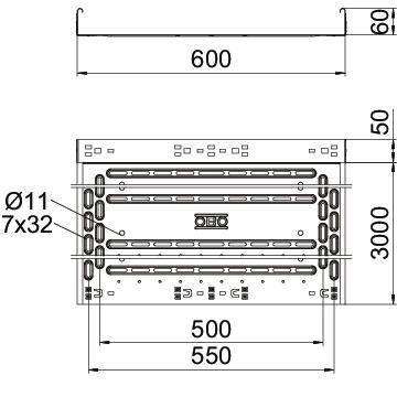 Produkta aprakstsCable tray made from CO2-reduced steel, with integrated quick-fastening system. Usable length 3,000 mm. With continuous side perforation of 7 x 20 mm for the installation of connection and mounting components. 11 mm perforation in the base for direct threaded rod susptension