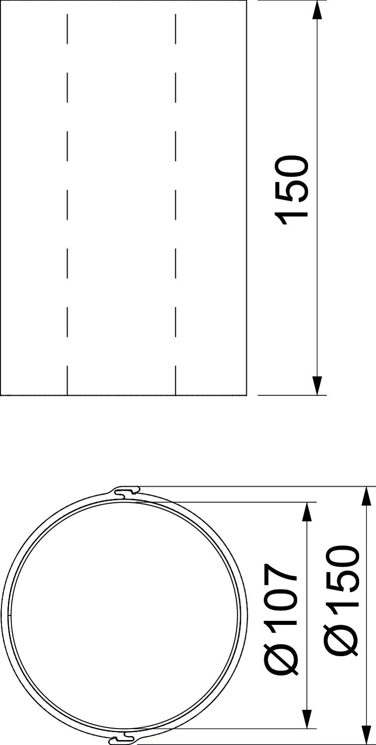 atverei maks. 165 mm atverei min. 125 mm Diametrs 116,4 mm Forma apaļš Garums 150 mm Izmērs Ø107x150mm Izmērs B 116,4 mm Izmērs D, min. 107 mm Izmērs L 150 mm Krāsa pelēks Materiāls Polivinilhlorīds Nepieciešamie piederumi nē Ugunsdrošības instalācija Noblīvējums no gatavām detaļām - Visi tipi