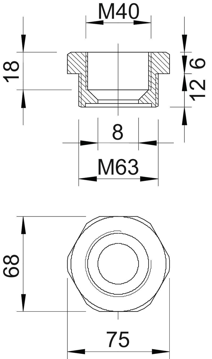 Produkta aprakstsSašaurinājums ar metrisko iekšējo un ārējo vītni plastmasas kabeļu skrūvsavienojumu montāžai uz korpusiem. Aizsardzības veids IP54 bez papildu savienojuma blīves. Aizsardzības veids līdz IP68 iespējams ar papildu blīvi, piemēram, apaļo blīvgredzenu vai plakano blīvgredzenu.