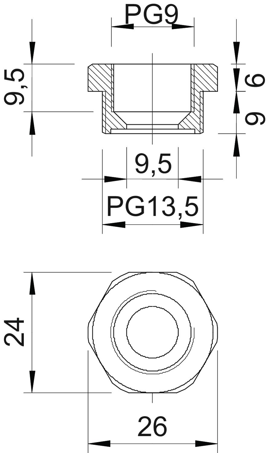 Produkta aprakstsSašaurinājums ar metrisko iekšējo un ārējo vītni atbilstoši DIN 40430 plastmasas kabeļu skrūvsavienojumu montāžai uz korpusiem. Aizsardzības veids IP54 bez papildu savienojuma blīves. Aizsardzības veids līdz IP68 iespējams ar papildu blīvi, piemēram, apaļo blīvgredzenu vai plakano blīvgredzenu.
