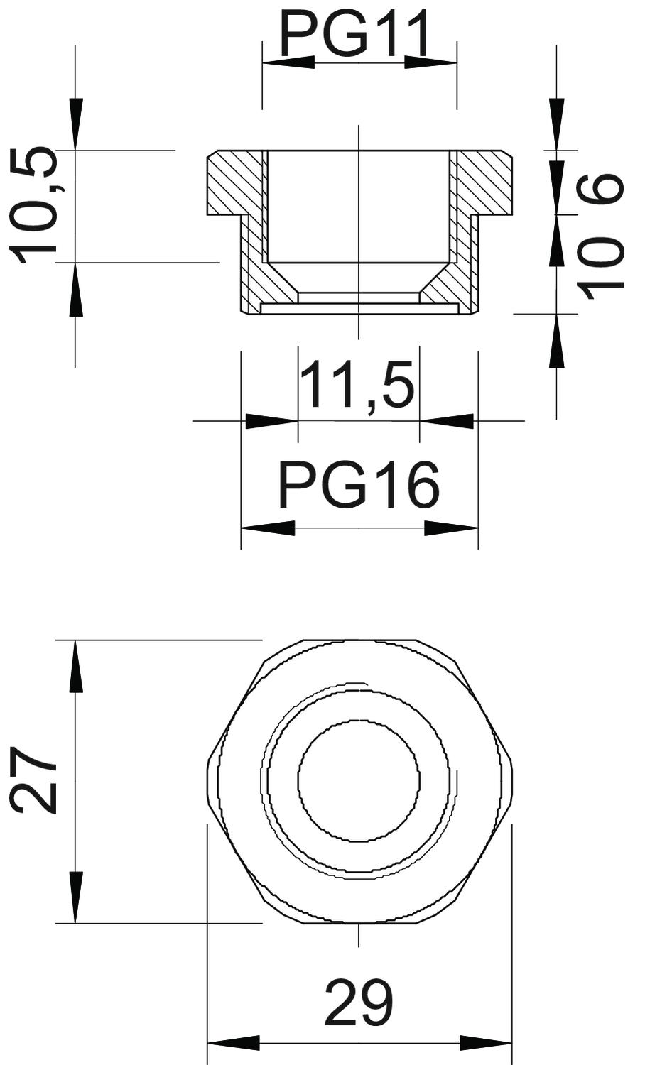 Produkta aprakstsSašaurinājums ar metrisko iekšējo un ārējo vītni atbilstoši DIN 40430 plastmasas kabeļu skrūvsavienojumu montāžai uz korpusiem. Aizsardzības veids IP54 bez papildu savienojuma blīves. Aizsardzības veids līdz IP68 iespējams ar papildu blīvi, piemēram, apaļo blīvgredzenu vai plakano blīvgredzenu.