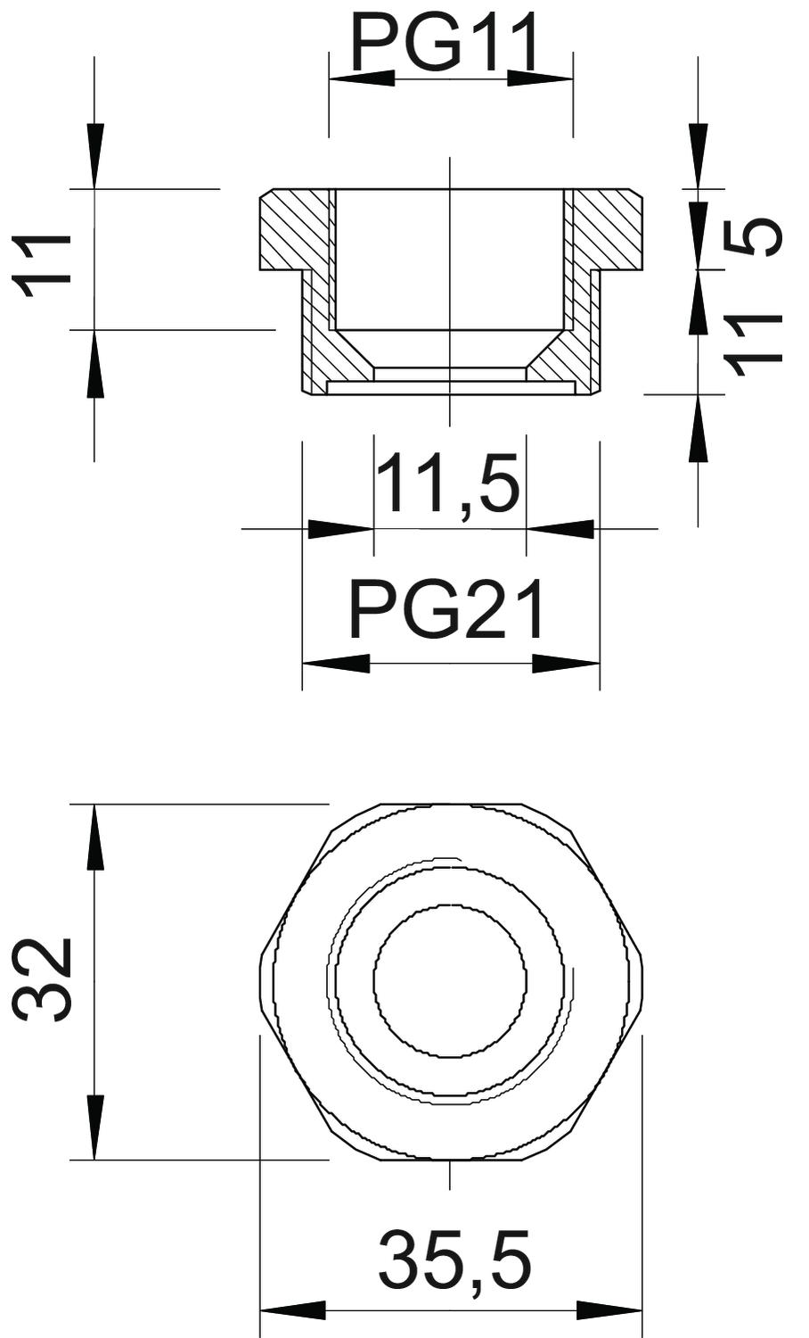 aizsargāta pret eksploziju nē Atslēgas platums 32 CO2 pēdas nospiedums (GWP) no šūpuļa līdz vārtiem 0,0515 kg CO2e / 1 Gabals Izmērs PG21-PG11 Izmērs D 11,5 mm Izmērs e 35,5 mm Izmērs L1 11 mm Izmērs L2 5 mm Izmērs L3 11 mm Krāsa gaiši pelēks; RAL 7035 Materiāls Poliamīds Nesatur halogēnus jā Niķelēts nē Vīnes veids – ārējā vītne Pg Vītnes garums 11 mm Vītnes izmērs PG, ārējais 21 Vītnes izmērs PG, iekšējais 11 Vītnes veids – iekšējā vītne Pg - Visi tipi