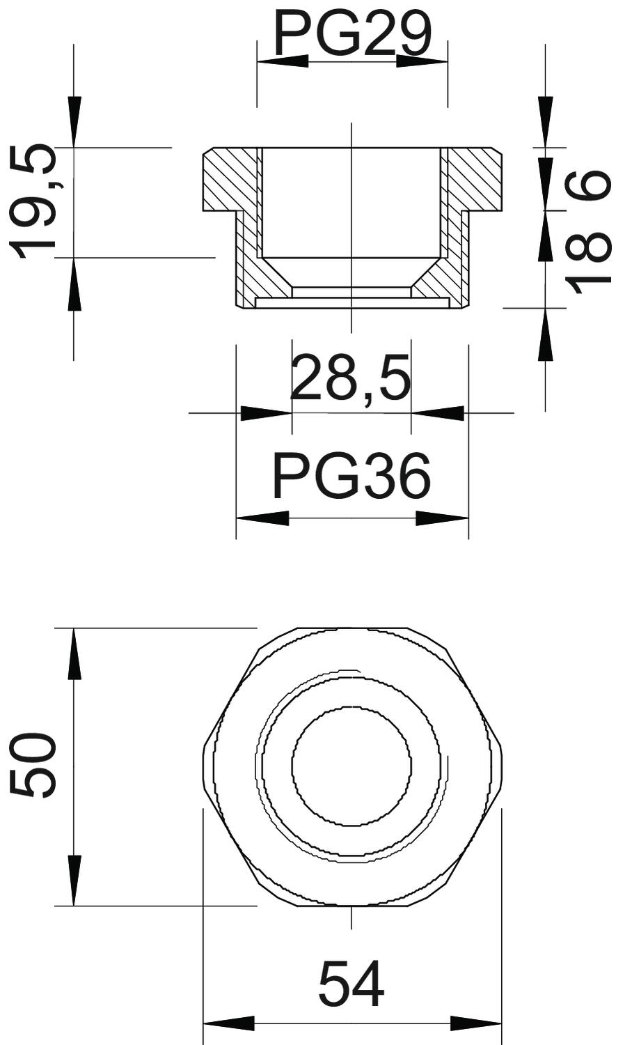 aizsargāta pret eksploziju nē Atslēgas platums 50 CO2 pēdas nospiedums (GWP) no šūpuļa līdz vārtiem 0,11 kg CO2e / 1 Gabals Izmērs PG36-PG29 Izmērs D 28,5 mm Izmērs e 54 mm Izmērs L1 18 mm Izmērs L2 6 mm Izmērs L3 19,5 mm Krāsa gaiši pelēks; RAL 7035 Materiāls Poliamīds Nesatur halogēnus jā Niķelēts nē Vīnes veids – ārējā vītne Pg Vītnes garums 18 mm Vītnes izmērs PG, ārējais 36 Vītnes izmērs PG, iekšējais 29 Vītnes veids – iekšējā vītne Pg - Visi tipi