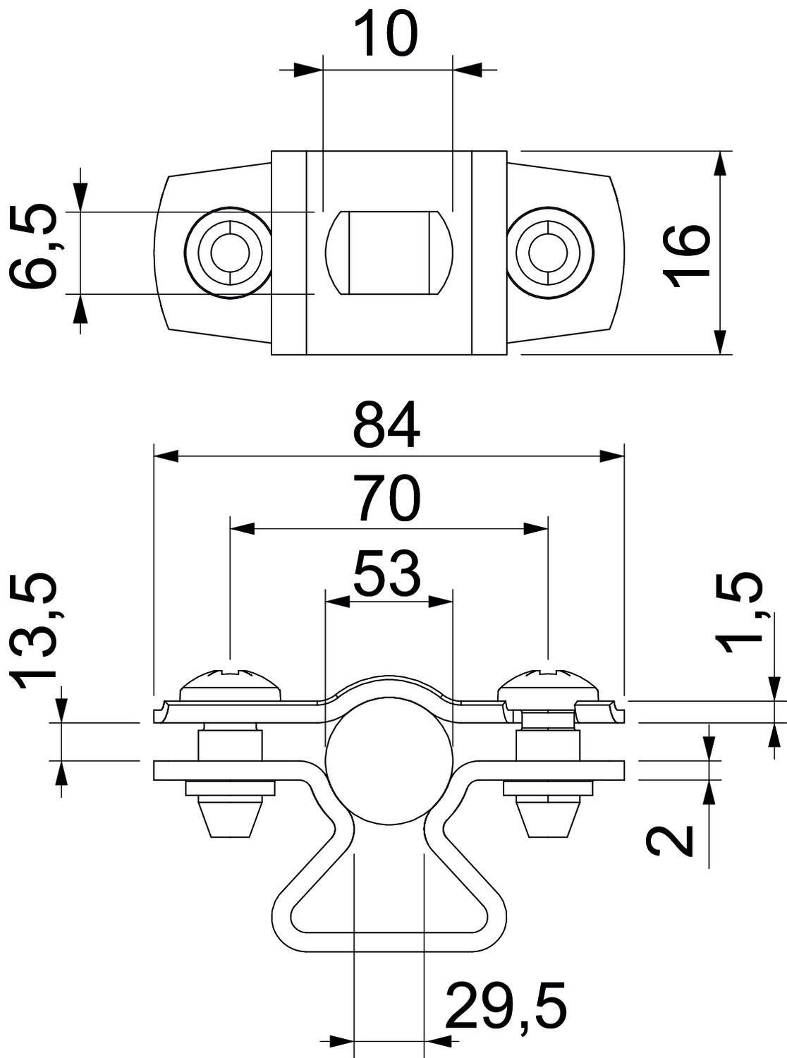 ar plastmasas apvalku nē Atstatums līdz sienai jā CO2 pēdas nospiedums (GWP) no šūpuļa līdz vārtiem 0,3704 kg CO2e / 1 Gabals diametram 44 - 53 Izmērs t1 (mm) 1,5 Izmērs 44-53mm Izmērs A 84 mm Izmērs B 70 mm Izmērs b 16 mm Izmērs D 53 mm Izmērs d maks. 53 mm Izmērs D, min. 44 mm Izmērs L 10 mm Izmērs s 29,5 mm Izmērs t2 (mm) 2 Izmērs x 13,5 mm Izpildījums slēgts Kabeļu/ cauruļu skaits 1 Materiāla biezums 1,5 mm Materiāls Alumīnijs Nesatur halogēnus jā Spriegošanas diapazons D maks. 53 mm Spriegošanas diapazons D min. 44 mm Stiprinājuma veids Caurums skrūvēšanai UV izturīgs jā - Visi tipi