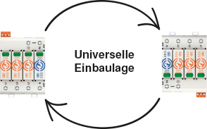 Papildu lieliskajam tehniskajam aprīkojumam visas pārsprieguma aizsargierīces var viegli un nesarežģīti uzmontēt, nofiksējot komutācijas skapī uz montāžas sliedes. Izlādņus V50 un V20, pateicoties universālajai konstrukcijai var iemontēt, pagriežot par 180°, tādējādi kabeļus var pieslēgt vai nu augšā vai apakšā, atkarībā no pieejamās vietas.