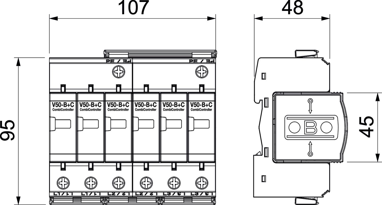 • Zibensizlādes strāvas novadīšanas spēja 20 kA (10/350) katrai fāzei, bet kopā līdz 60 kA (10/350)