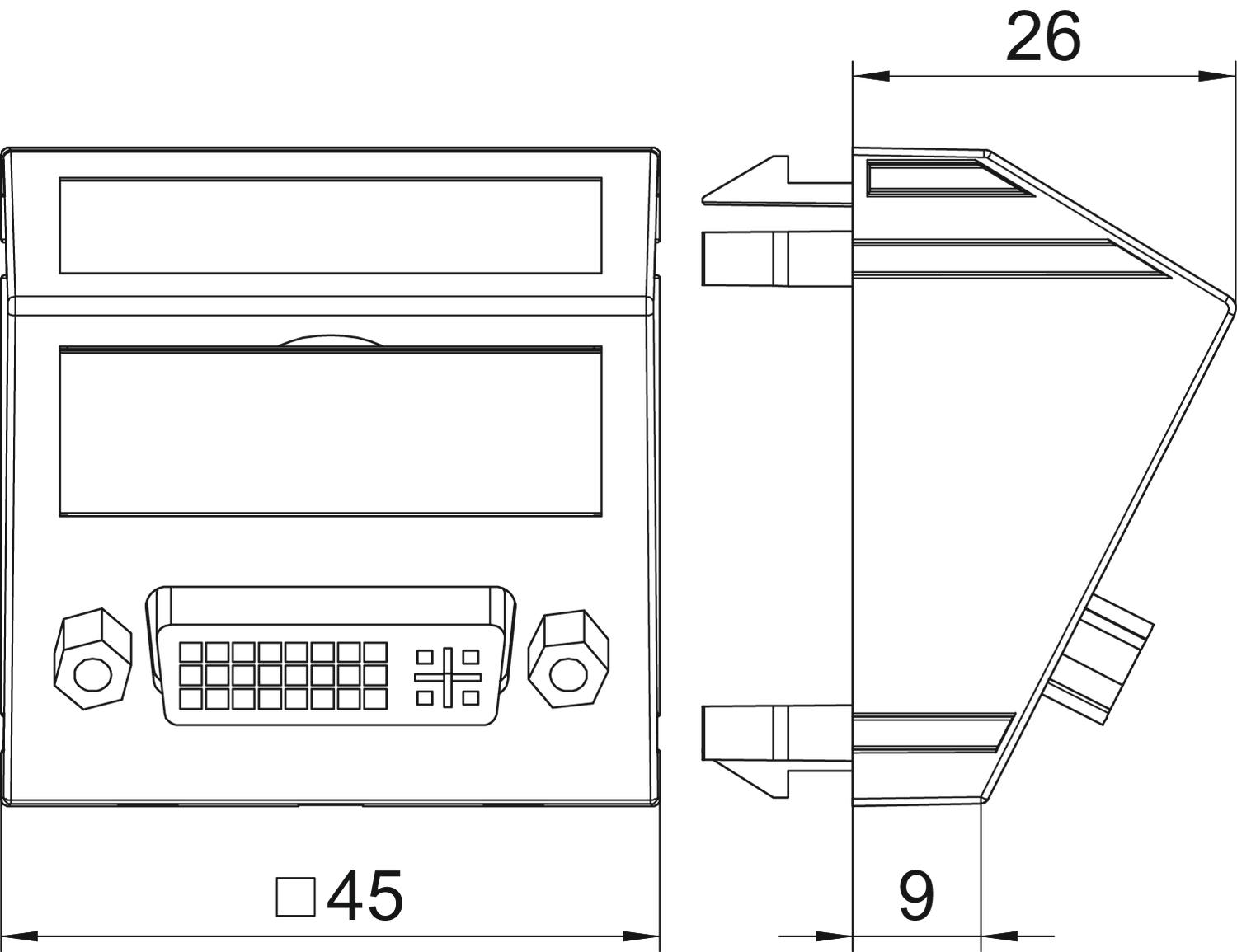 Produkta aprakstsMultimediju stiprinājums ar vienu DVI-I pieslēguma ligzdu, kabeļa izeja slīpa, ar pamatni piezīmēm, īss DVI-I savienotājkabelis "ligzda-ligzda" veidā. Balstenis ar automātiskās fiksācijas stiprinājumu, kas ir paredzēts horizontālai un vertikālai montāžai sistēmas vidē.