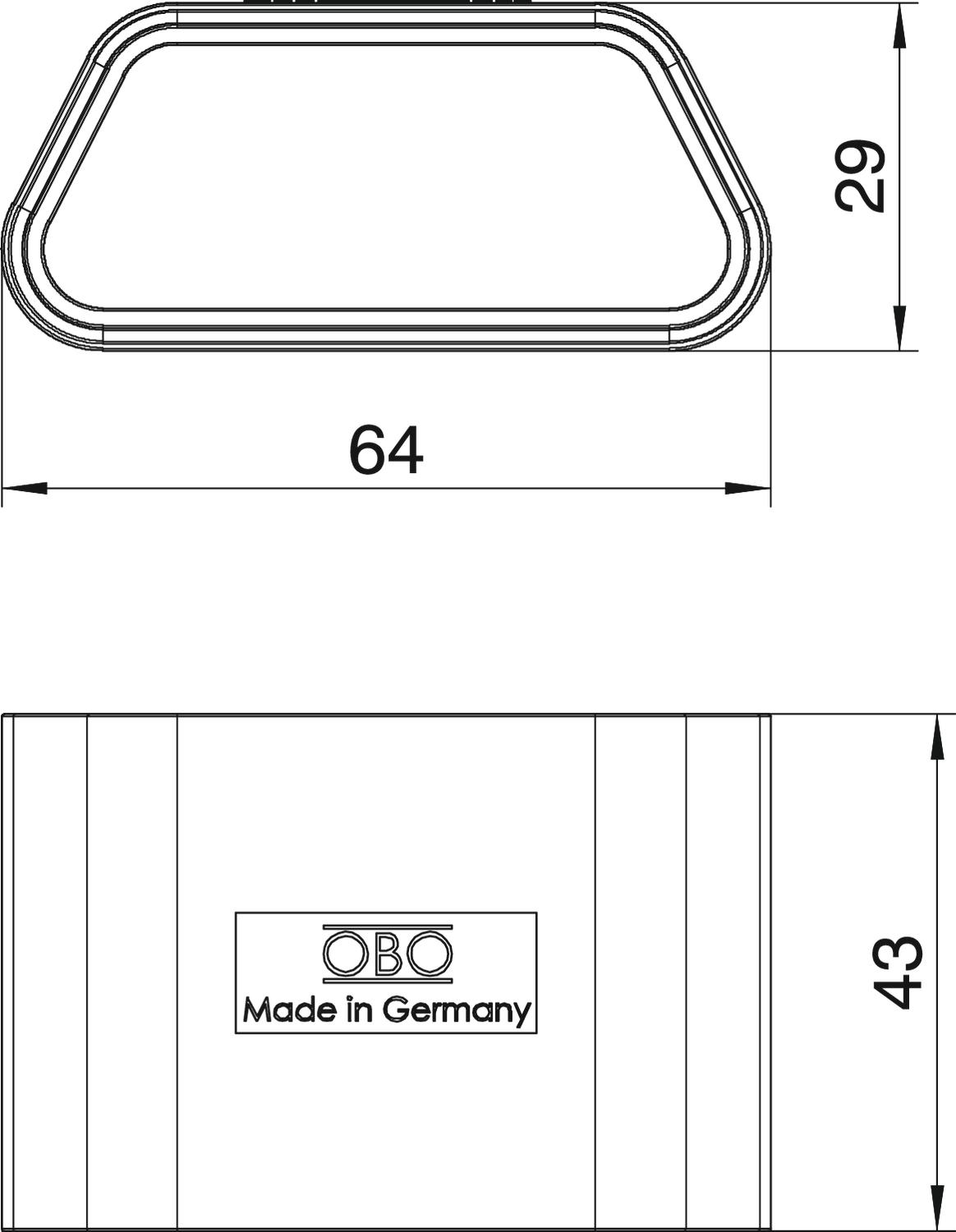 Augstums 29 mm CO2 pēdas nospiedums (GWP) no šūpuļa līdz vārtiem 0,0417 kg CO2e / 1 Gabals Garums 43 mm Izpildījums uzliktnis Kanāla augstums min. 25 mm Kanālu platums min. 60 mm Krāsa gaiši pelēks Materiāls Polivinilhlorīds Platums 64 mm - Visi tipi