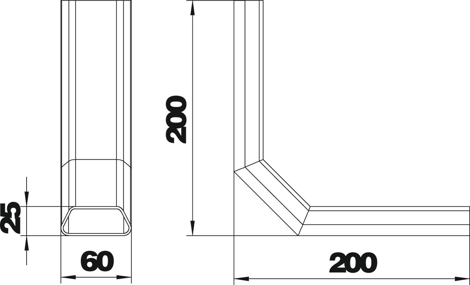 Produkta aprakstsVertikāls līkums virziena maiņai par 90°, der kanāla izmēram 60x25.