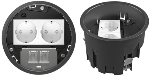 Instalācijas kārba ir pieejama tukša vai jau aprīkota. Aprīkotajā modelī atrodas vai nu viena divvietīga kontaktligzda, vai divu atsevišķu Modul 45 ierīču brīvas izvēles kombinācija. Ar divvietīgo kontaktligzdu jau aprīkotā instalācijas kārba īpaši ir piemērota standarta pielietojumam. Variants divām Modul 45 atsevišķām ierīcēm sniedz vēl lielāku elastību montāžā: montāžas telpa šajā variantā ir atdalīta - tas ļauj vienlaicīgi iebūvēt divas kontaktligzdas un divus multivides pieslēgumus, piemēram, HDMI, VGA vai datu pārsūtīšanas tehniku.
