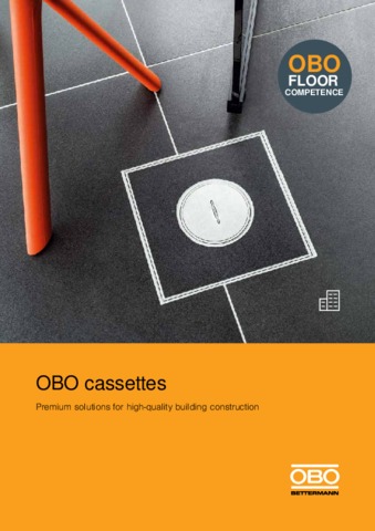OBO kasetes var izlīdzināt gatavās grīdas līmenī un īpašā variantā izmantot arī skaņas izolācijai. Tās ir pieejamas taisnstūra dizainā kas piemēroti grīdas segumiem ar sauso, viegli mitro un slapjo uzkopšanu. Kasetes ietvars ir izgatavots no kvalitatīva nerūsējošā tērauda vai misiņa. Integrētā 4 mm biezā tērauda plāksne vēl vairāk palielina kasetes slodzes izturību. Kasetes ir pārbaudītas atbilstoši standartam EN 50085-2-2 OBO BET testēšanas centra modernajās pārbaudes iekārtās. Visus segumus, piemēram, flīzes, akmeni, marmoru, parketu, koka dēļus vai arī PVC un vinilu var lieliski integrēt kasešu vākos.
