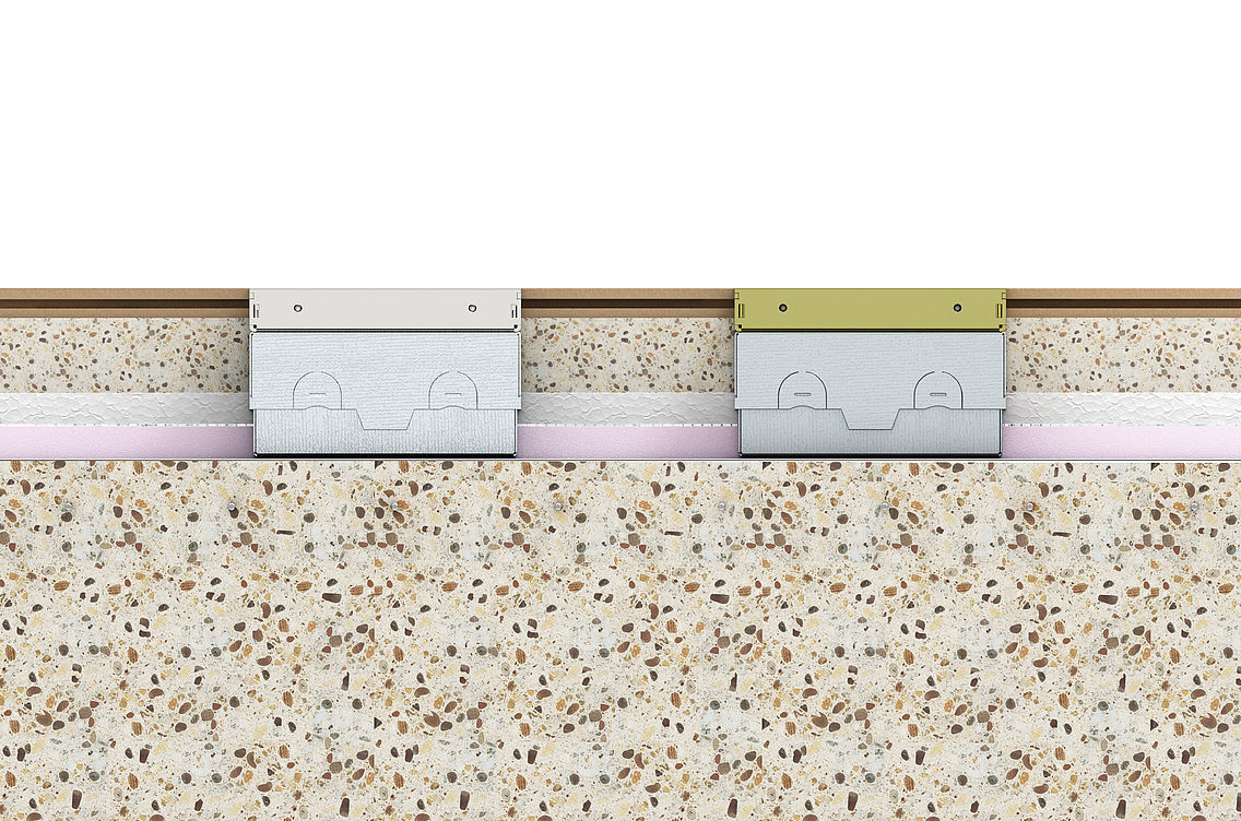 UDHOME grīdas kontaktligzdas var iebūvēt grīdā, ievērojami taupot vietu. Tās tiek montētas tieši uz neapstrādātas grīdas un pieslēgtas, izmantojot lokanās instalācijas caurules, pēc tam iestrādātas vienā augstumā ar izlīdzinošo kārtu.