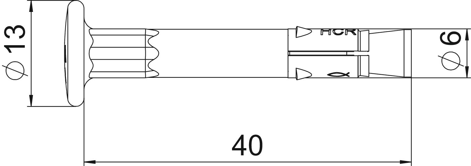 Produkta aprakstsEnkurnagla ar naglas galvu, piemēram, ugunsdrošības apšuvumu, montāžas sliežu, metāla apskavu, koka un metāla apakškonstrukciju enkurošanai pie sienām un griestiem no saplaisājuša betona iekštelpās un ārtelpā. Iedzīšanai ar āmuru vai perforatoru. Slodžu iedarbībā enkurnagla izplešas patstāvīgi un noenkurojas urbuma caurumā. Nerūsējošs, ļoti izturīgs pret koroziju. Pārbaudīts no ugunsdrošības viedokļa, ugunsizturības klase R 120 saskaņā ar Eiropas tehnisko atļauju ETA-06/0175.