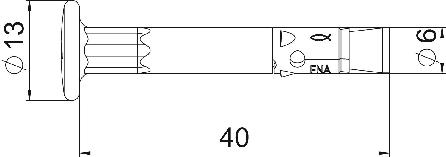 Produkta aprakstsEnkurnagla ar naglas galvu, piemēram, ugunsdrošības apšuvumu, montāžas sliežu, metāla apskavu, koka un metāla apakškonstrukciju enkurošanai pie sienām un griestiem no saplaisājuša betona iekštelpās un ārtelpā. Iedzīšanai ar āmuru vai perforatoru. Slodžu iedarbībā enkurnagla izplešas patstāvīgi un noenkurojas urbuma caurumā. Nerūsējošs, ļoti izturīgs pret koroziju. Pārbaudīts no ugunsdrošības viedokļa, ugunsizturības klase R 120 saskaņā ar Eiropas tehnisko atļauju ETA-06/0175.