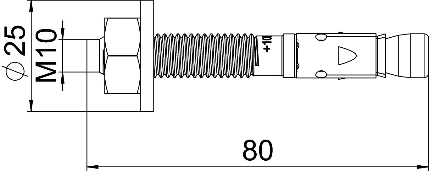 Dībeļu/naglu/skrūvju pielietojums Izplešanās dībelis Garums 75 mm Ietilpības diapazons maks. 10 mm Ir saņemtas atļaujas jā Izmērs M10x75 Izmērs L 75 mm Izpildījums iespraužams Krāsa cinks Materiāls Tērauds Metriskā vītne 10 Urbtā cauruma diametrs min. 10 mm Virsma galvaniski cinkota Vītne M10 Vītnes garums 33 mm Vītnes veids metrisks - Visi tipi