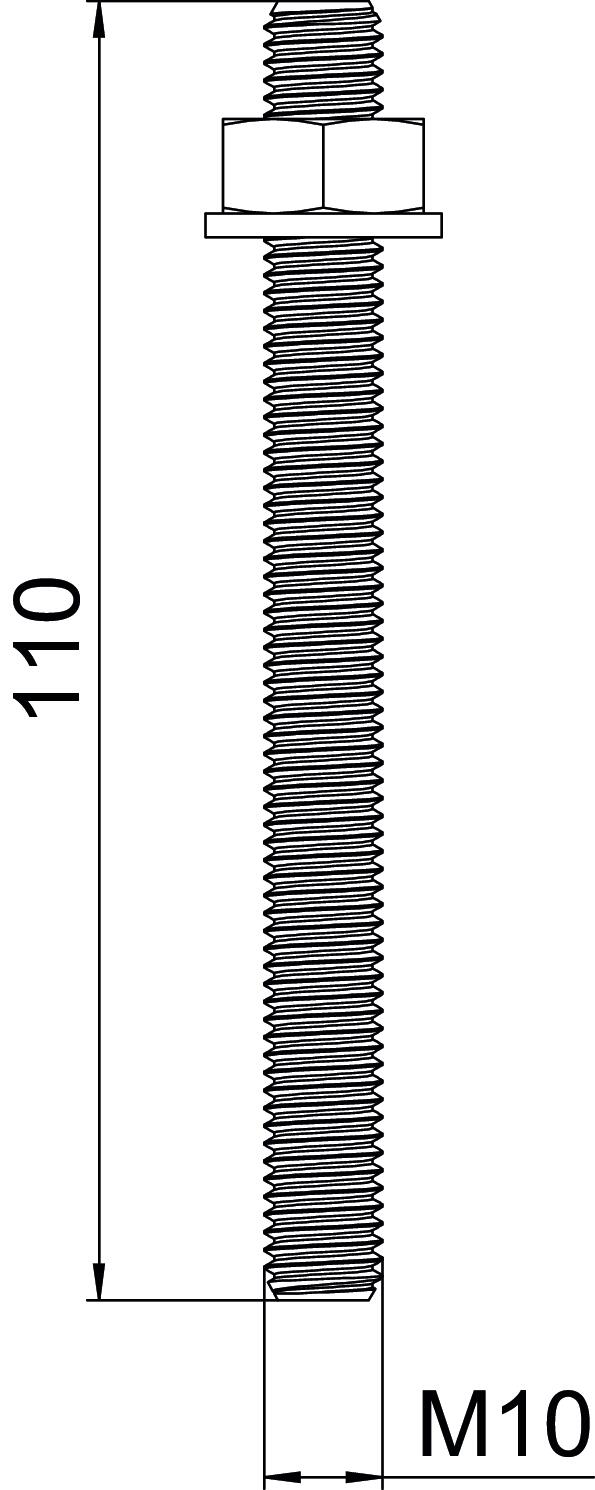 Ar ārējo vītni jā Diametrs 10 mm Dziļuma marķējums nē Garums 110 mm Izmērs 10x110 Izmērs d 10 mm Izmērs D 10 mm Izmērs L 110 mm Izturības klase 5.8 Krāsa cinks Materiāls Tērauds Metriskā vītne 10 Virsma galvaniski cinkota Vītne M10 Vītnes veids metrisks - Visi tipi