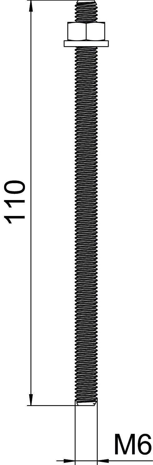 Ar ārējo vītni jā Diametrs 6 mm Dziļuma marķējums nē Garums 110 mm Izmērs 6x110 Izmērs d 6 mm Izmērs D 6 mm Izmērs L 110 mm Izturības klase 5.8 Krāsa cinks Materiāls Tērauds Metriskā vītne 6 Virsma galvaniski cinkota Vītne M6 Vītnes veids metrisks - Visi tipi
