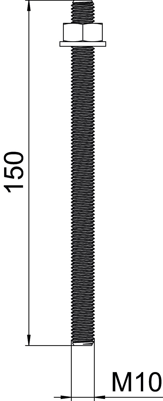 Ar ārējo vītni jā Diametrs 10 mm Dziļuma marķējums nē Garums 150 mm Izmērs 10x150 Izmērs D 10 mm Izmērs d 10 mm Izmērs L 150 mm Izturības klase 5.8 Krāsa cinks Materiāls Tērauds Metriskā vītne 10 Virsma galvaniski cinkota Vītne M10 Vītnes veids metrisks - Visi tipi