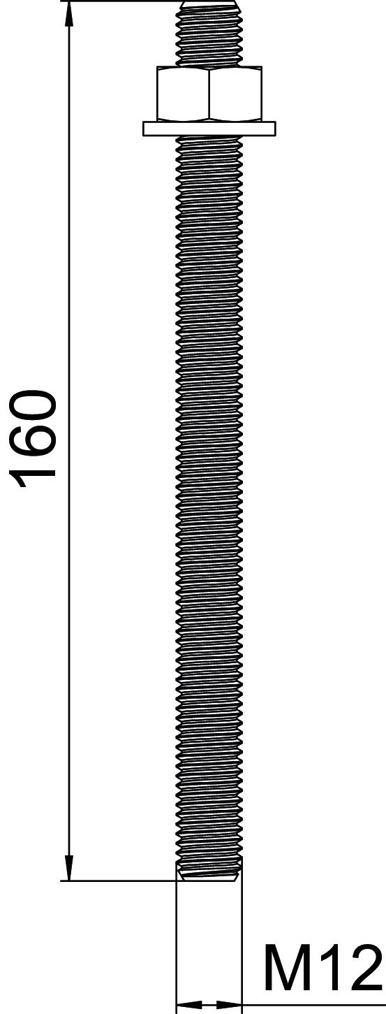 Ar ārējo vītni jā Diametrs 12 mm Dziļuma marķējums nē Garums 160 mm Izmērs 12x160 Izmērs d 12 mm Izmērs D 12 mm Izmērs L 160 mm Izturības klase 5.8 Krāsa cinks Materiāls Tērauds Metriskā vītne 12 Virsma galvaniski cinkota Vītne M12 Vītnes veids metrisks - Visi tipi