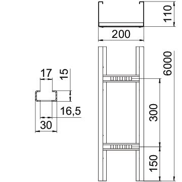 Produkta aprakstsGara laiduma kabeļu trepes ar caurumotu profila malu un malas augstumu 110 mm. Kabeļu un vadu nostiprināšana ar piekarapskavas tipu 2056.