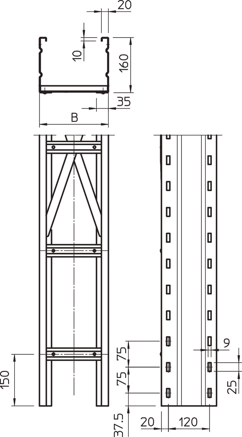 Produkta aprakstsGara laiduma kabeļu trepes ar perforētu profila malu un malas augstumu 160 mm. Kabeļu un vadu nostiprināšana ar piekarapskavas tipu 2056.