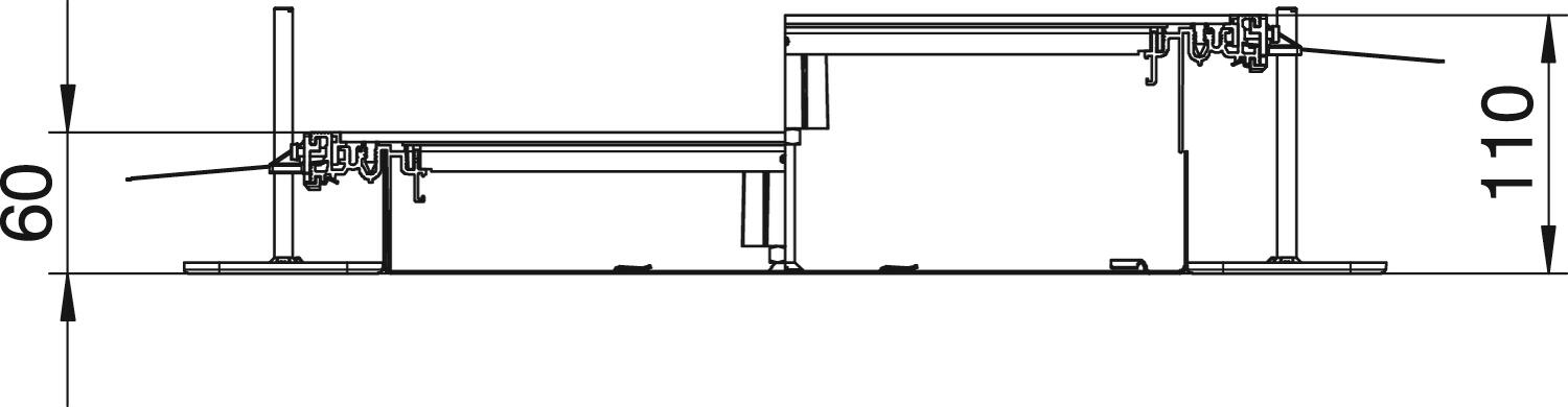 Produkta aprakstsMontāžai gatavs kanāla posms ar 3 vai 6 ierīču montāžas vākiem vadu ievilkšanai un iebūvējamo vienību ar nominālo izmēru 4 montāžai, sastāv no kanāla apakšdaļas (grīdā montējama rene ar sānu profiliem un grīdas seguma salaidumprofiliem) un kanāla vāka ar noslēgtu montāžas atveri. Grīdā montējama rene ar stiprinājuma mēlītēm starpliku pašfiksējošai montāžai. Piegādes komplektā ietilpst 6 augstumā regulējami stiprinājuma leņķi, 6 betona enkuri un vāka savienojuma blīves (3 gab. kanāliem ar nominālo platumu 300) vai augstumā regulējami vāka savienojuma balsti: 3 gab. kanāliem ar nominālo platumu 400 un 6 gab. kanāliem ar nominālo platumu 500 un 600. Piegādājot kanāla vāki ir pieskrūvēti.