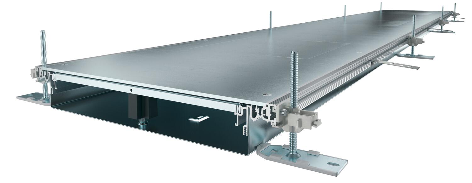 Produkta aprakstsMontāžai gatavs kanāla posms ar 3 vai 6 ierīču montāžas vākiem vadu ievilkšanai un iebūvējamo vienību ar nominālo izmēru 9 montāžai, sastāv no kanāla apakšdaļas (grīdā montējama rene ar sānu profiliem un grīdas seguma salaidumprofiliem) un kanāla vāka ar noslēgtu montāžas atveri. Grīdā montējama rene ar stiprinājuma mēlītēm starpliku pašfiksējošai montāžai. Piegādes komplektā ietilpst 6 augstumā regulējami stiprinājuma leņķi, 6 betona enkuri un augstumā regulējami vāka savienojuma balsti: 3 gab. kanāliem ar nominālo platumu 400 un 6 gab. kanāliem ar nominālo platumu 500 un 600. Piegādājot kanāla vāki ir pieskrūvēti.